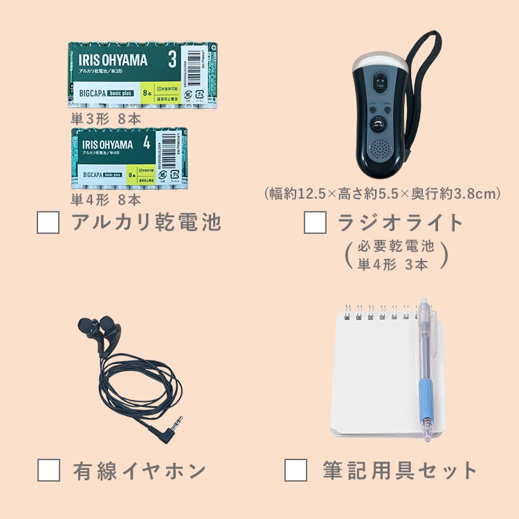 空いたスペースには食品や必需品を入れるなど、一人ひとりに合った防災リュックを作れます。