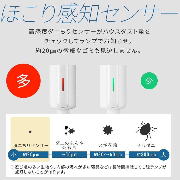ほこり感知センサーにより、ごみの量が多い・少ないが見やすく表示されより効率よくお掃除が行えます。