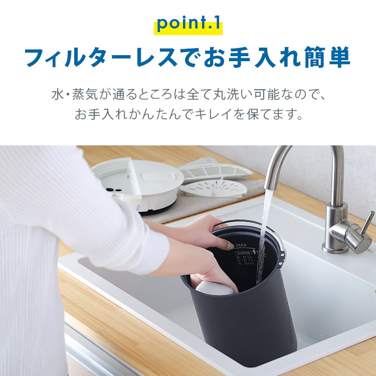 ヒーターを使って蒸気を放出するため、菌が繁殖しにくく衛生的です。