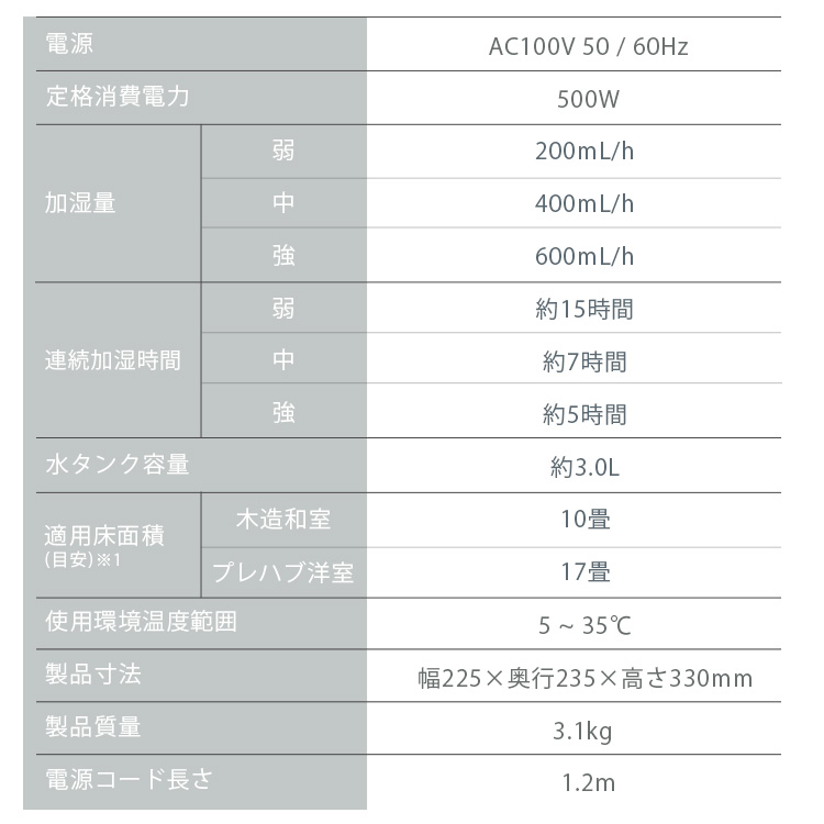 (※最大加湿量で連続加湿した場合。適用床面積は保証値ではありません。)