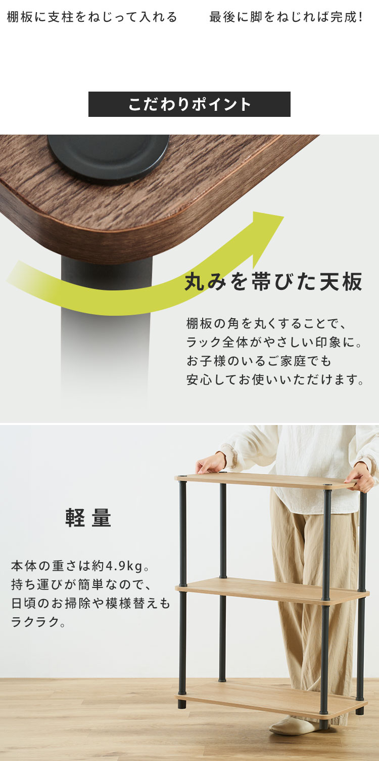 工具不要で、ポールをはめてねじるだけで簡単に組み立てることができます。
