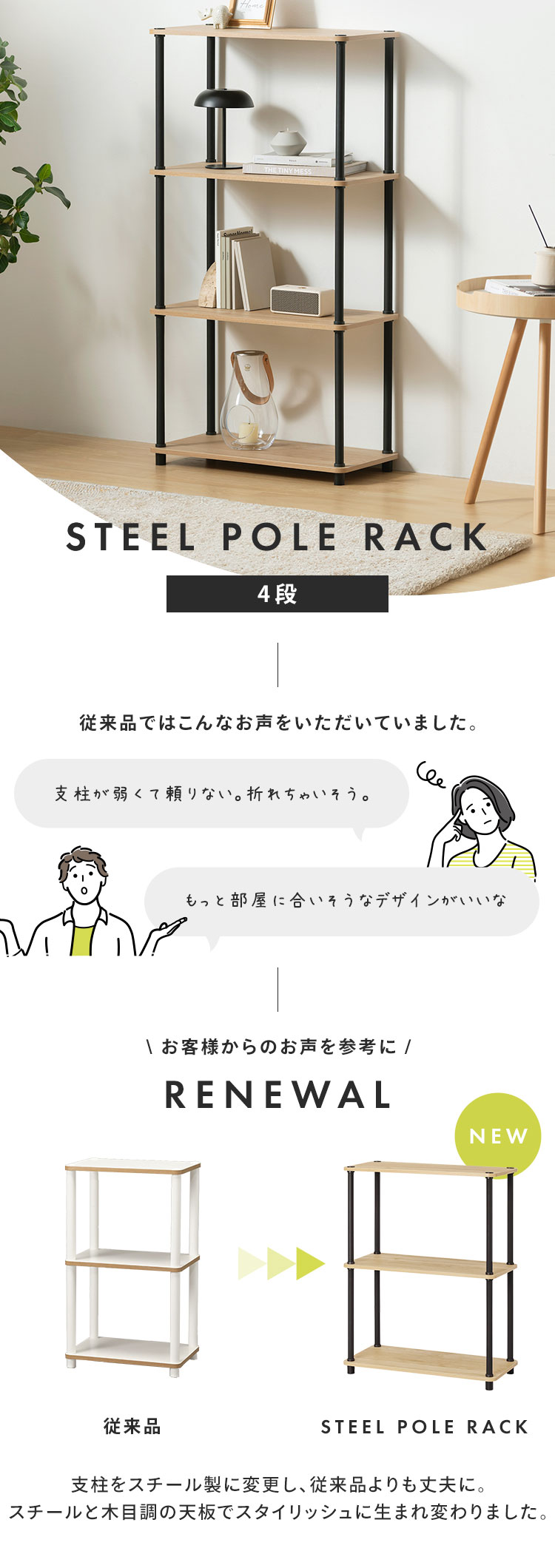ポールはスチールのため、耐久性に優れ、組み立て時や使用時も安心してご使用いただけます。