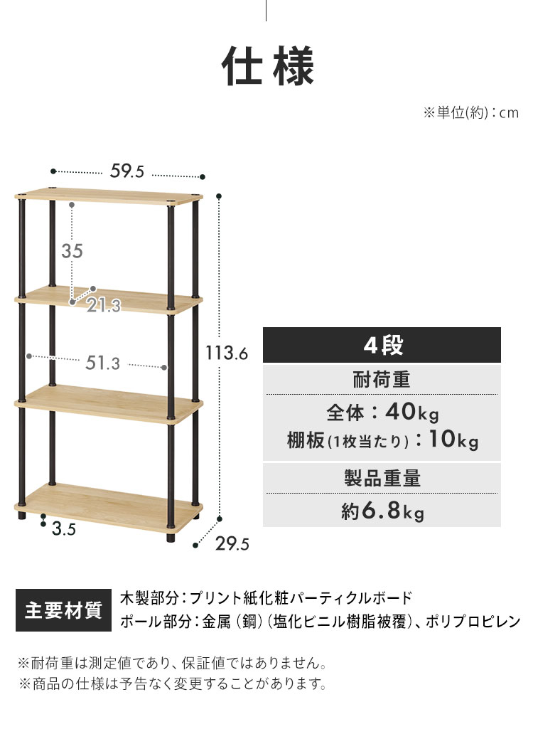 全体40kg、棚板1枚あたり10kg
