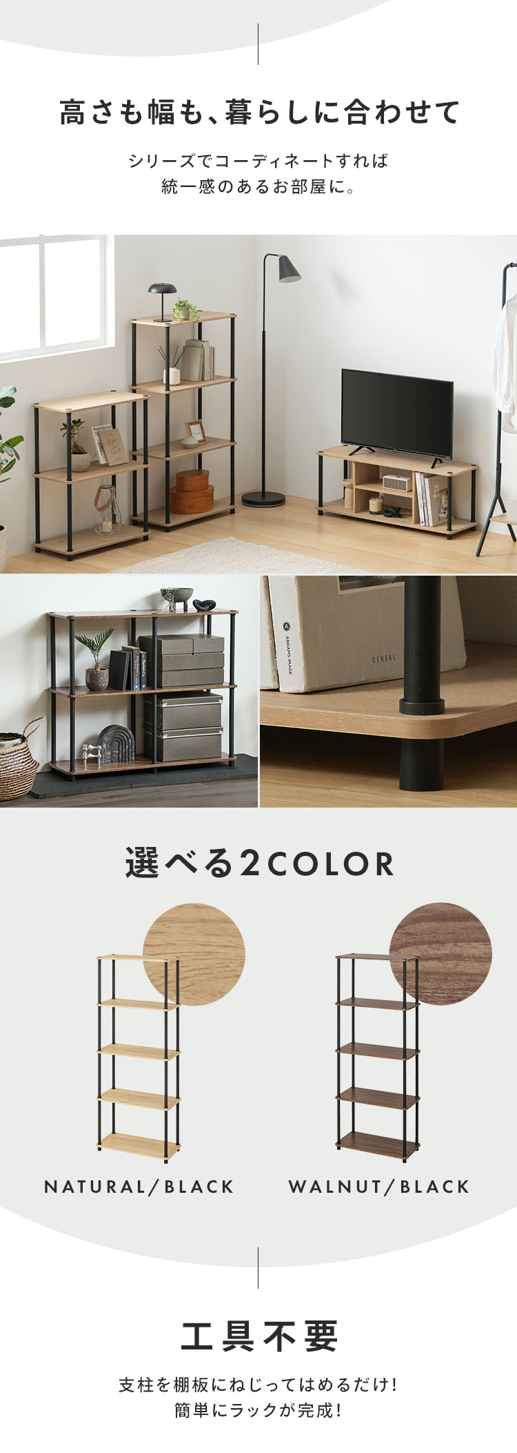 ブラックスチールとあたたかな木目調の木材の組み合わせで、スタイリッシュなお部屋を演出します。