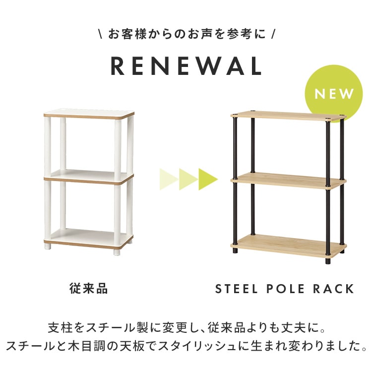 簡単に組み立てができるスチールポールラックです。