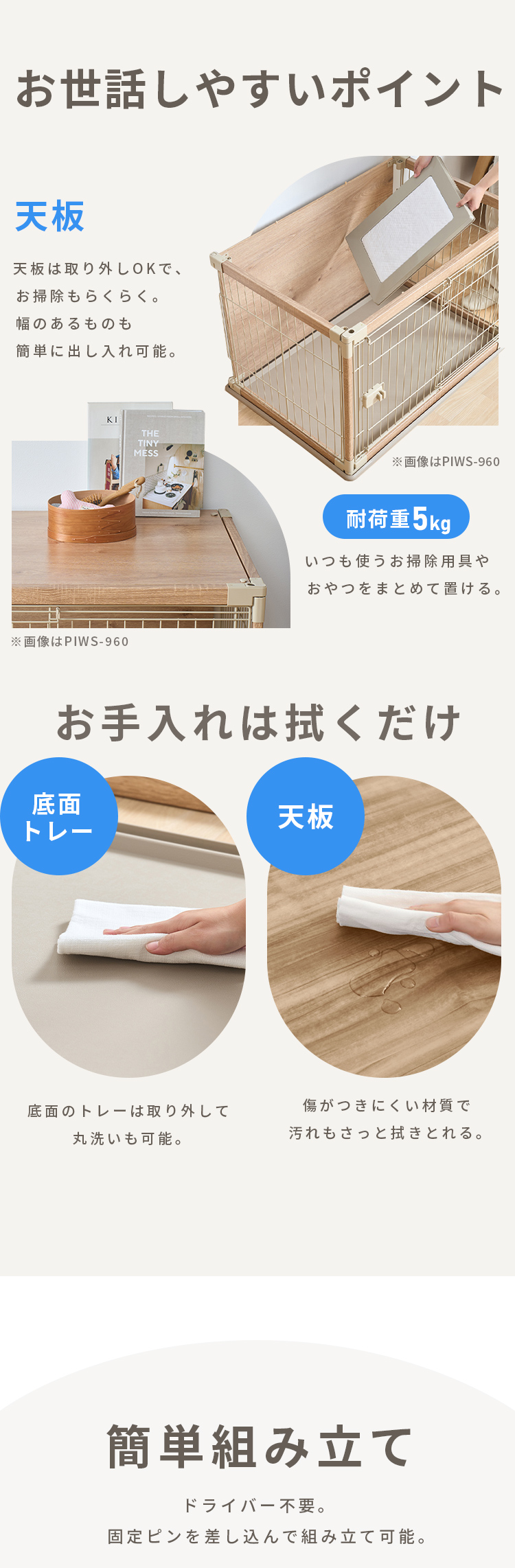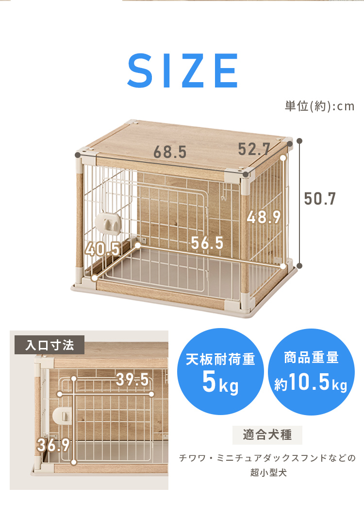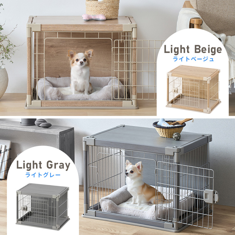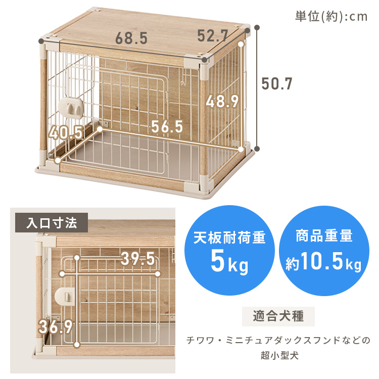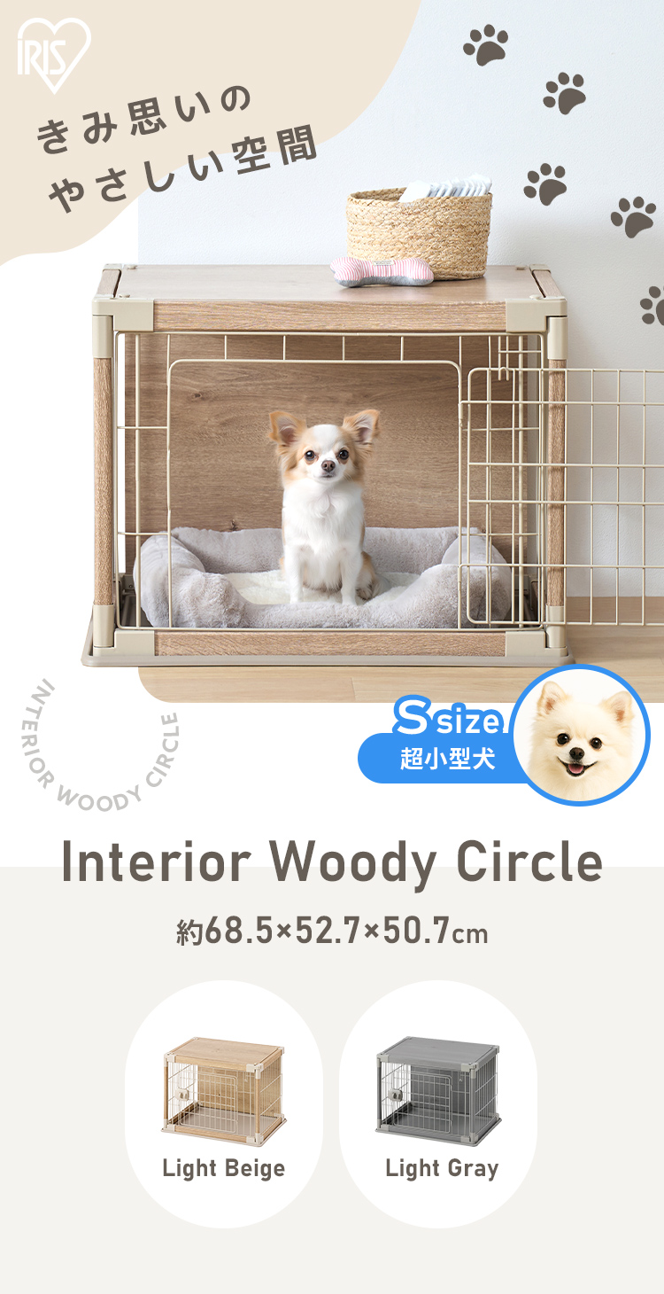 木製の屋根と背面板を付け、ワンちゃんがリラックスできる空間を目指したサークルです。