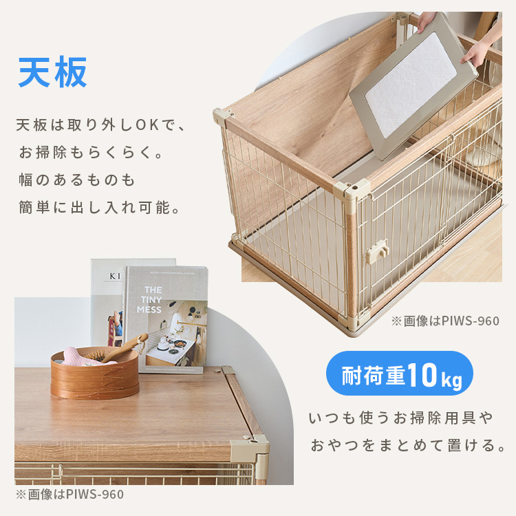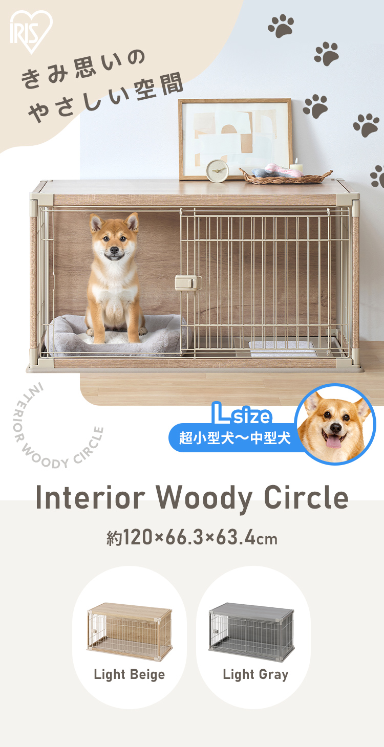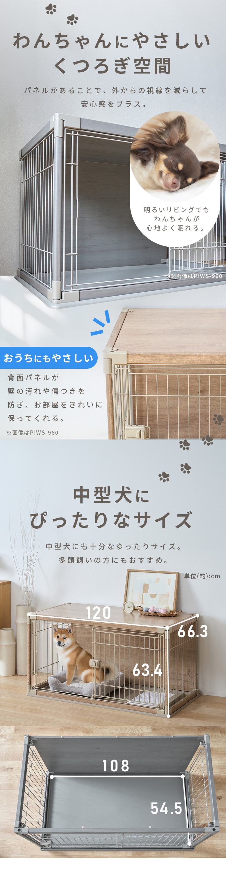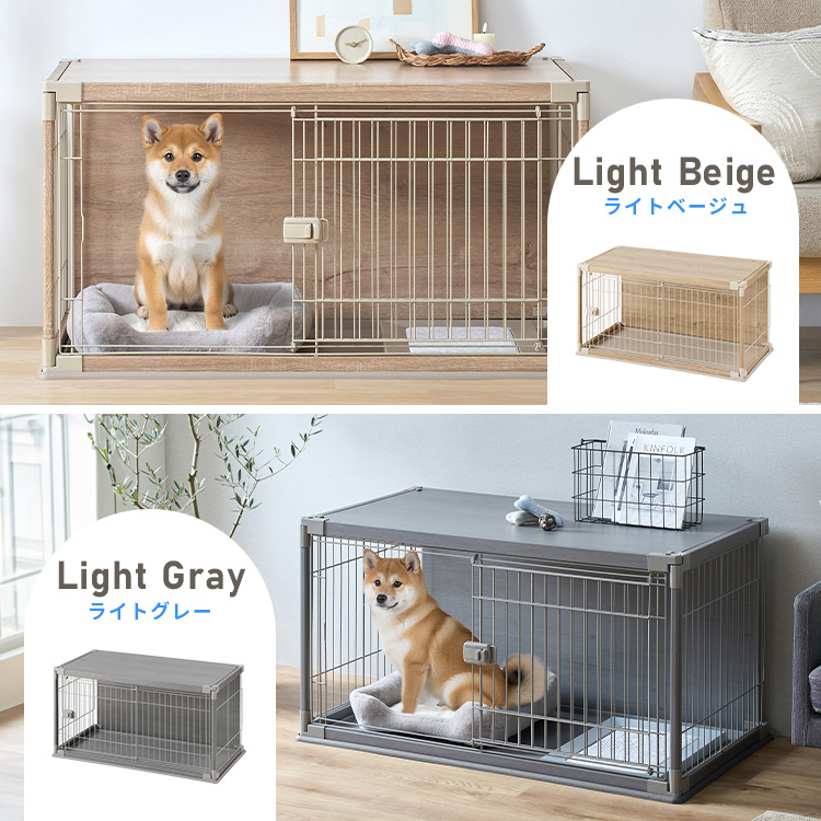 木製の屋根と背面板を付け、ワンちゃんがリラックスできる空間を目指したサークルです。