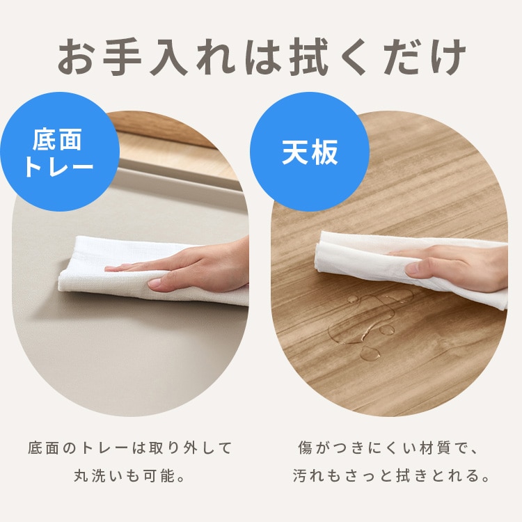 屋根・背面板はメラミン樹脂製のシートを使用しているので、ふき取り等のお手入れが簡単です。