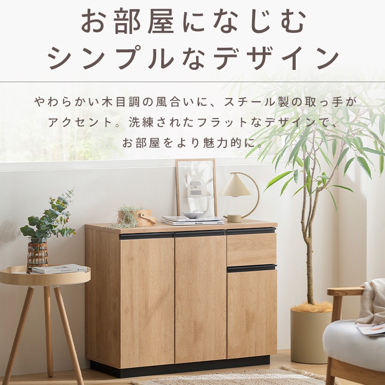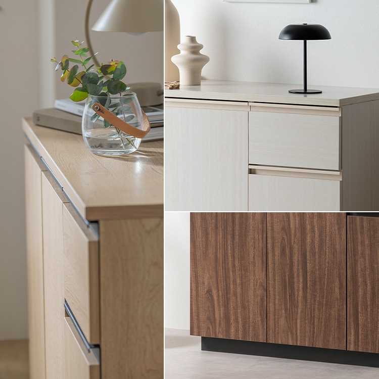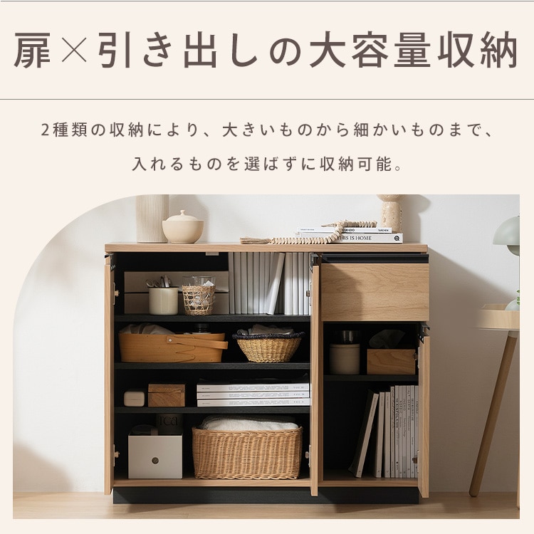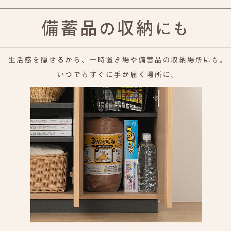 隠す収納で、お部屋をすっきりみせられるリビングキャビネットです。