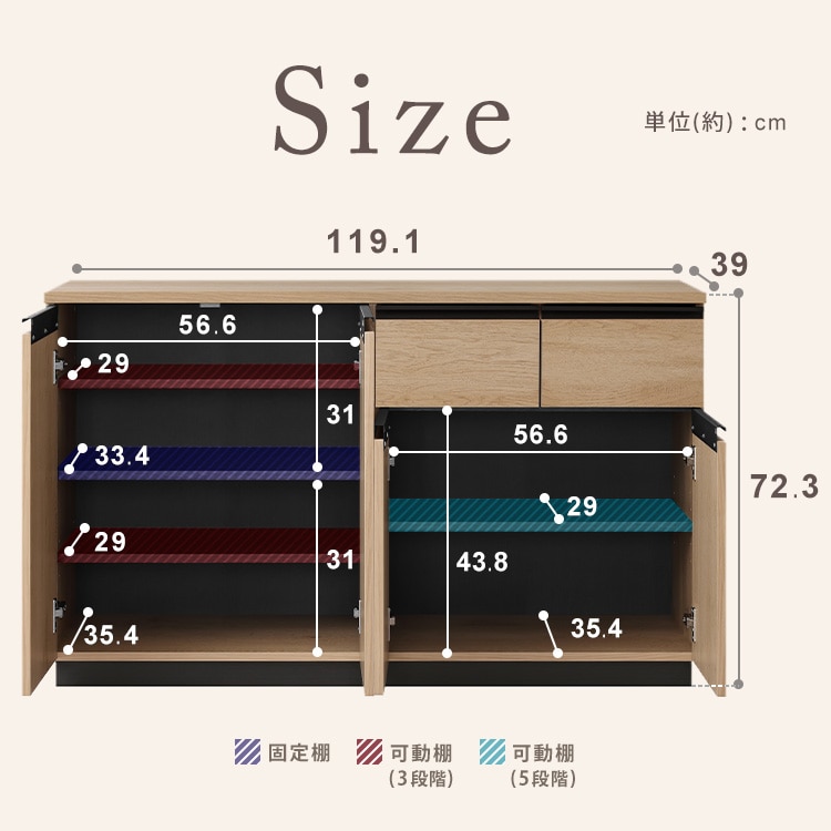 幅約119.1×奥行約39×高さ約72.3