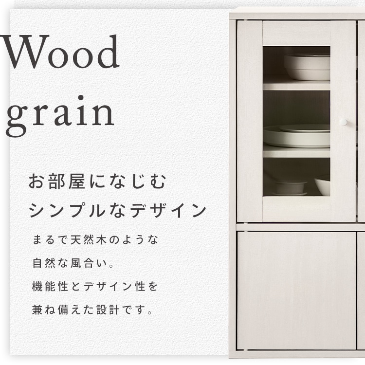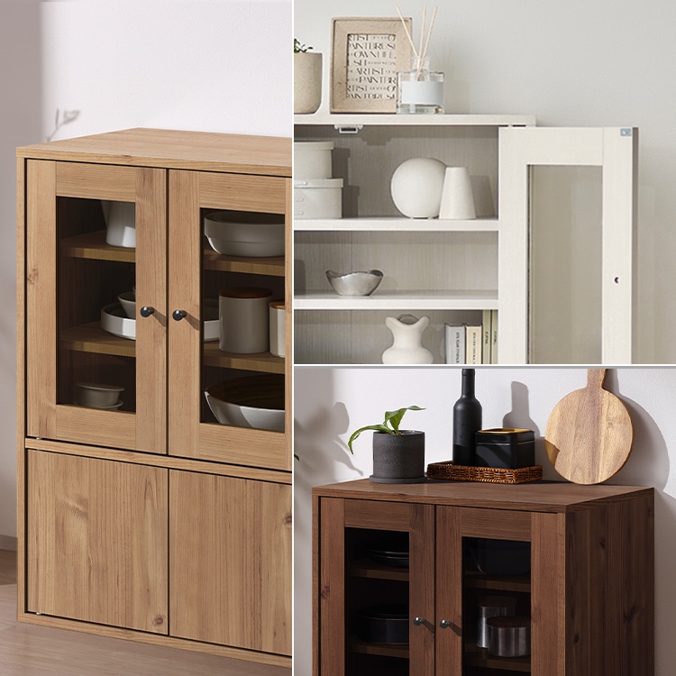 ガラス扉は中身が見え、食器棚やディスプレイ棚として使用できます。