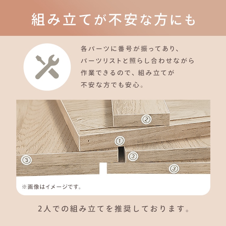 可動棚は2枚付きで収納物に合わせて高さを自由に調整可能です。