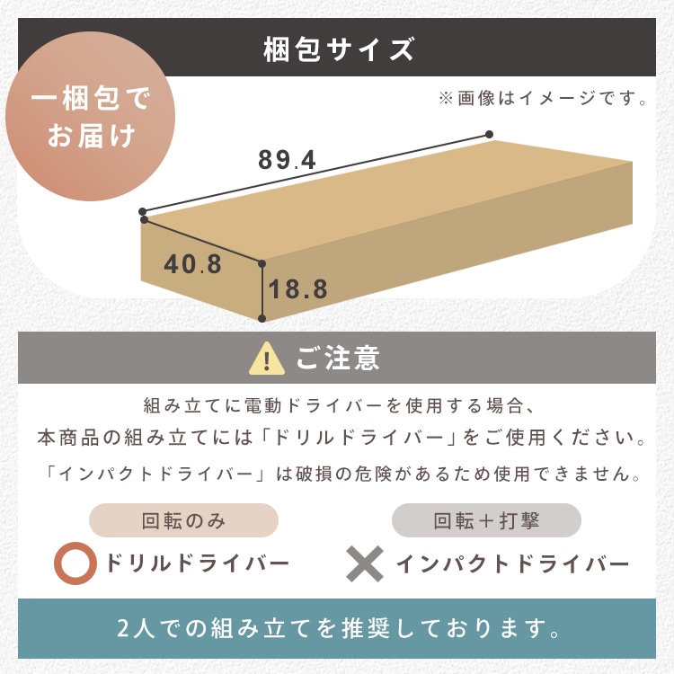 全体約50kg、天板約10kg、底板約10kg、固定棚板約10kg、可動棚板1枚あたり約10kg