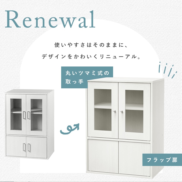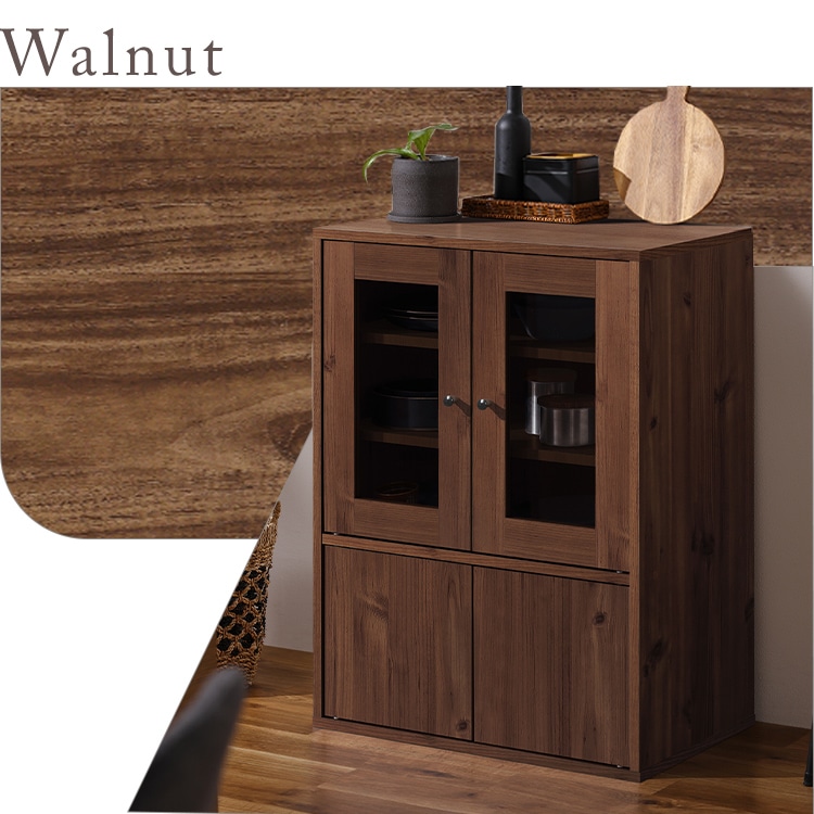 ガラス扉は中身が見え、食器棚やディスプレイ棚として使用できます。