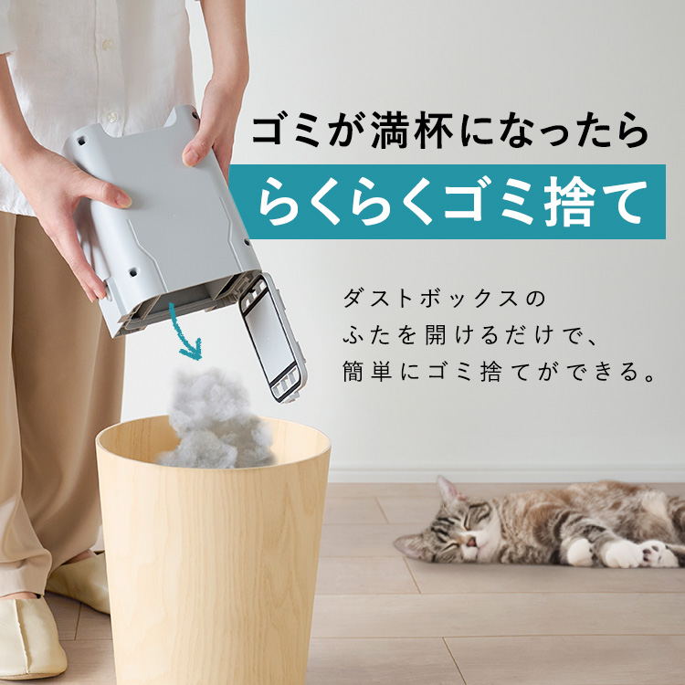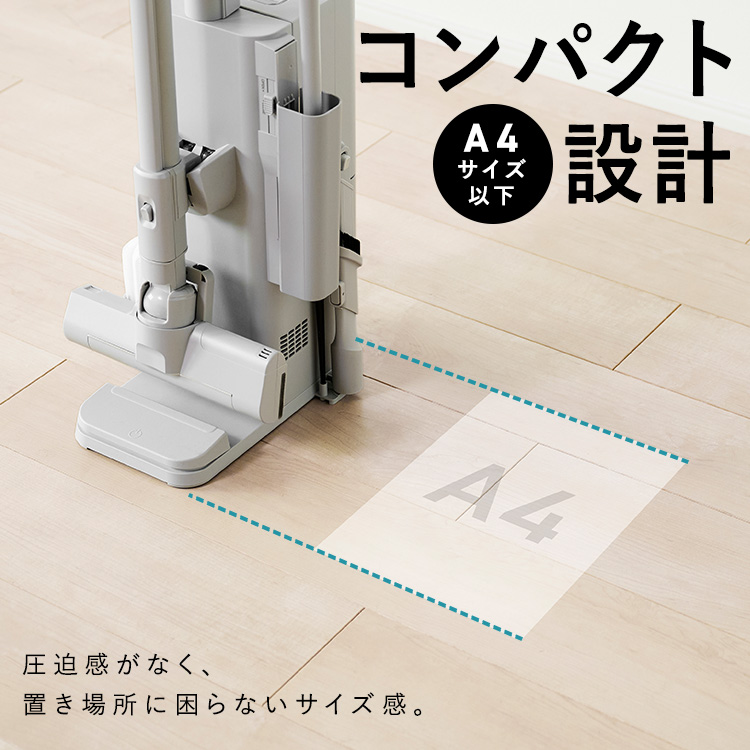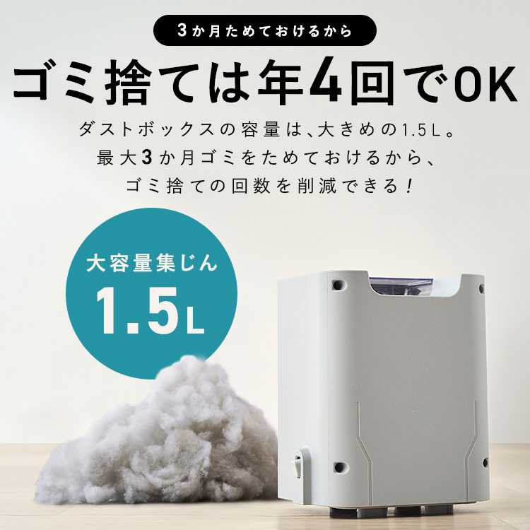 ダストボックスは大容量1.5Lでゴミ捨ては3カ月に1回※1ながら、A4サイズ以下の設置面積でとてもコンパクトです。