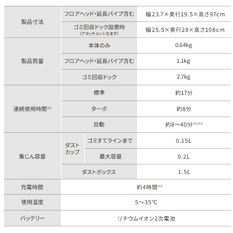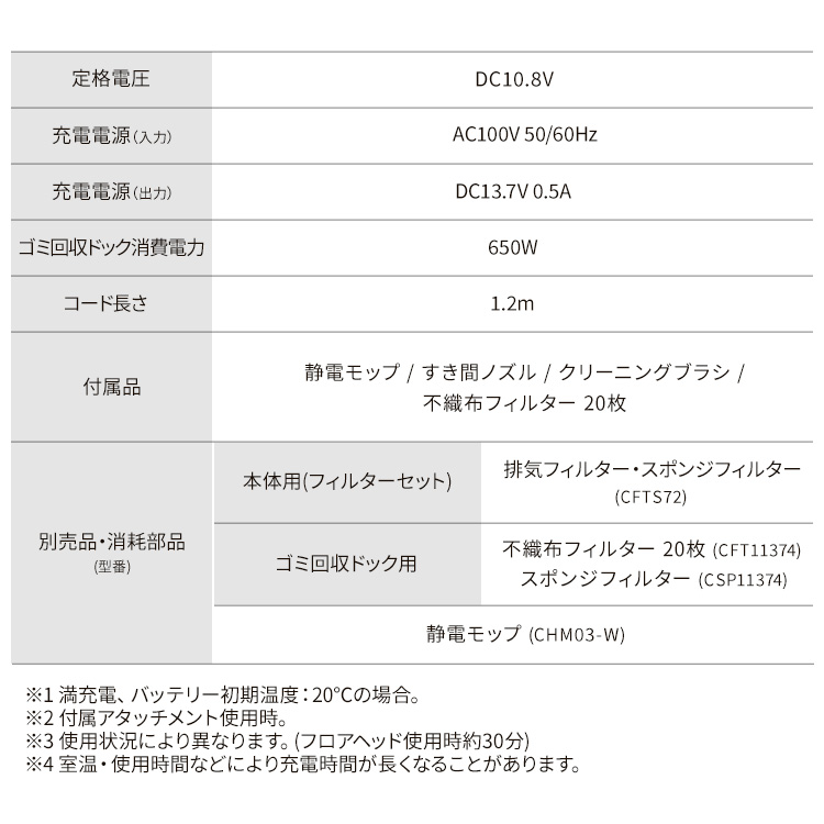 ※3 使用状況により異なります(フロアヘッド使用時約30分)。