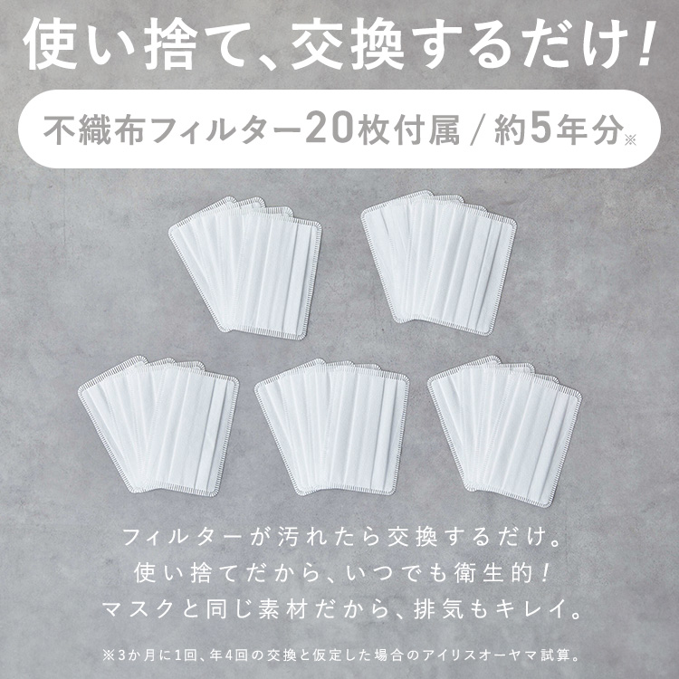 付属の不織布フィルター20枚約5年分※2付属でお手入れ箇所の削減。
