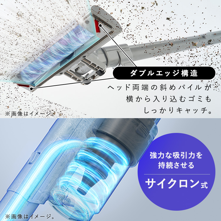 壁際のゴミの取り逃しを防ぐ【きわまでヘッド】を搭載。壁際のごみもしっかり吸引できる形状です。