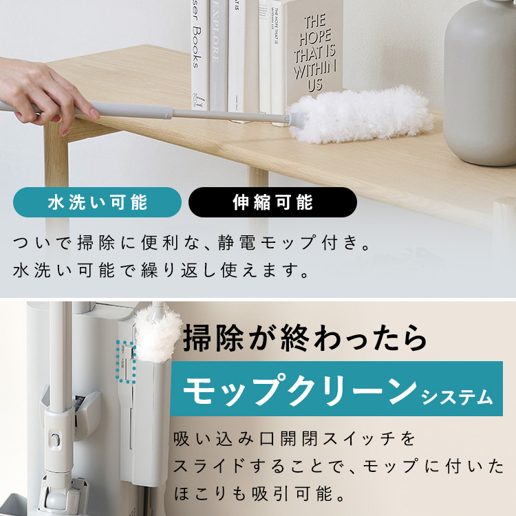静電モップ、すき間ノズル、クリーニングブラシ、不織布フィルター(20枚)