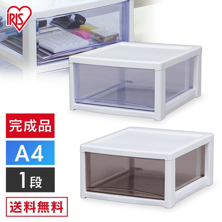 引出の材質にスチロールを採用した、中身が確認しやすいクリアタイプのチェストです。