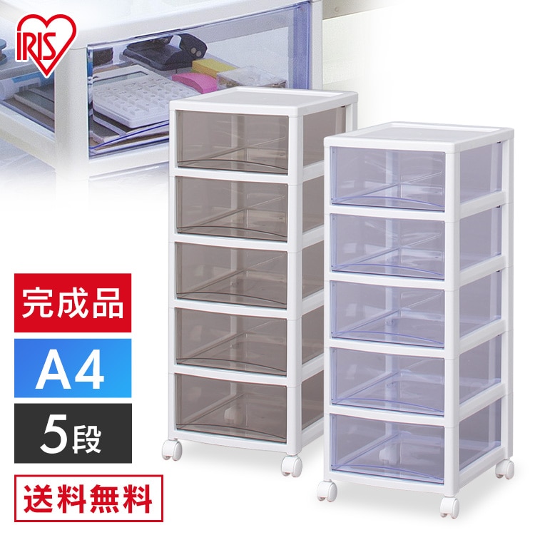 引出の材質にスチロールを採用した、中身が確認しやすいクリアタイプのチェストです。