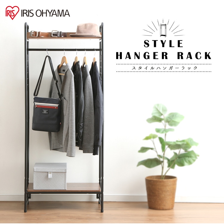 ハンガーパイプには衣類をかけて収納し、上下の棚板には帽子やカバンなどのファッション小物が収納できます。