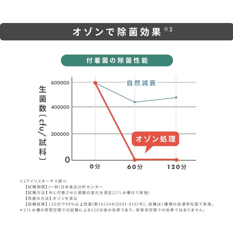 オゾン脱臭機能付きで、気になるニオイ物質を分解し脱臭します。他に除菌効果もあります。