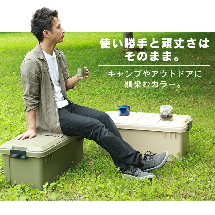 キャンプやBBQなど、アウトドア用品をたっぷり収納できるアウトドアボックス。