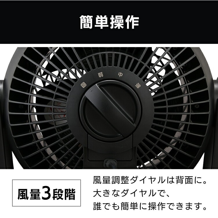 風量は3段階、調整ダイヤルは背面に。