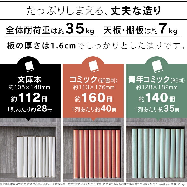青年コミック(B6版)なら約140冊収納できます。