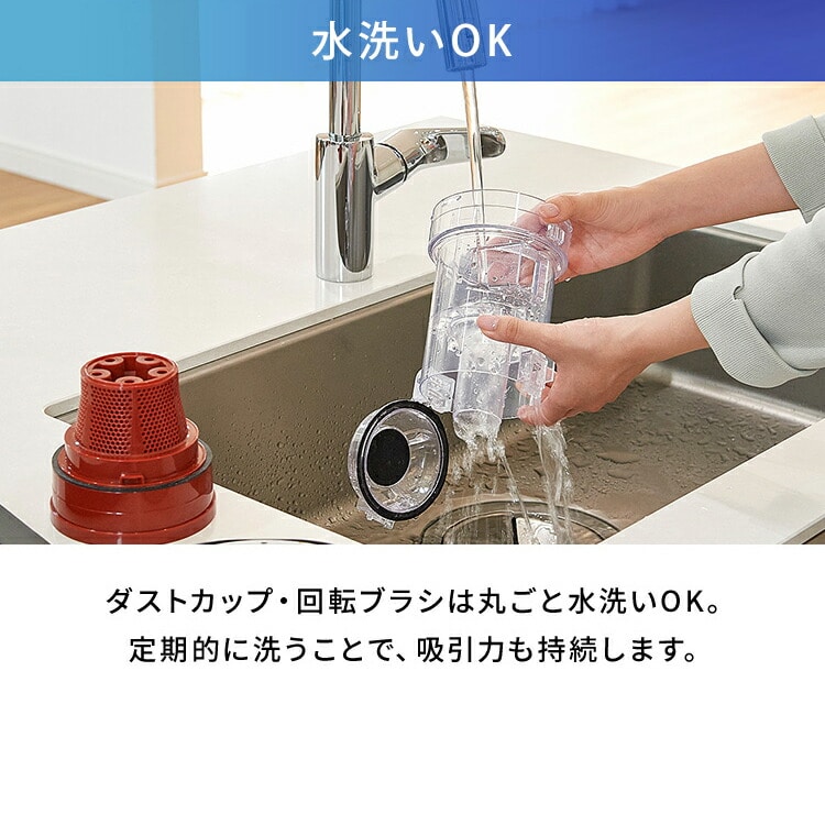 細かいほこりや砂ゴミをパワフルに吸引、隙間のゴミも逃しません。