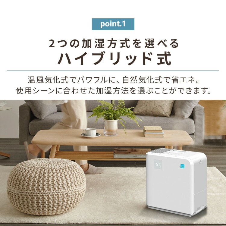 静かにやさしく潤うハイブリッド式加湿器。