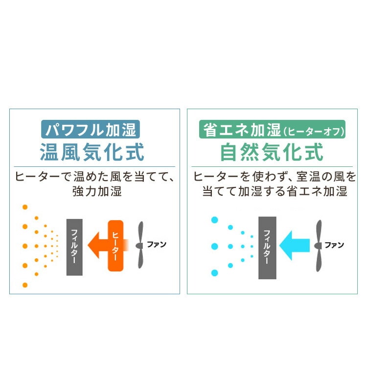 二つの加湿方式で使用シーンに合わせた加湿方法を選べます。