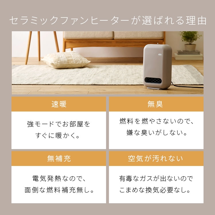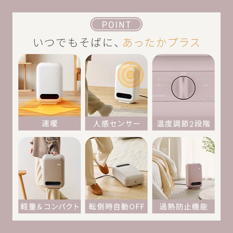 人感センサー付きセラミックファンヒーター JCH-127D-W ホワイト