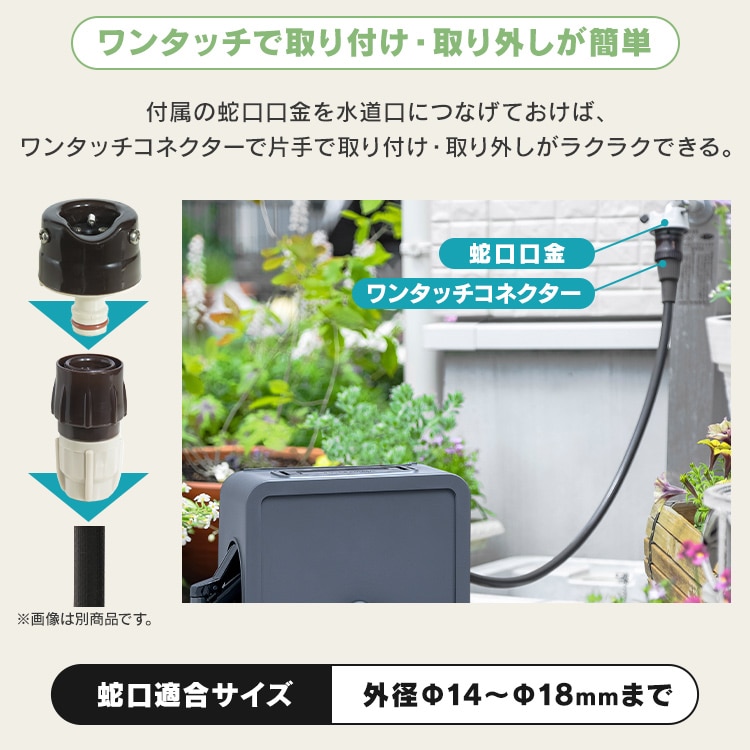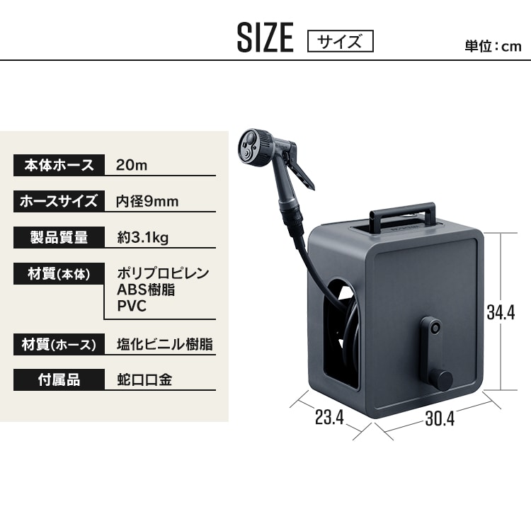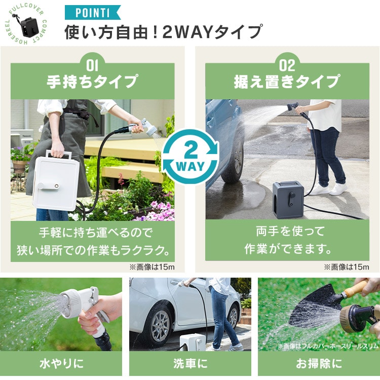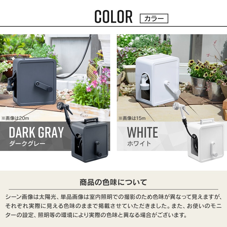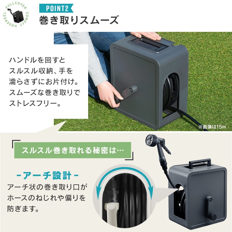 お家にあう、シンプルなデザインのフルカバーコンパクトホースリールです。