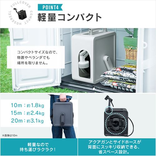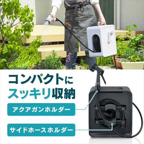 お家にあう、シンプルなデザインのフルカバーコンパクトホースリールです。