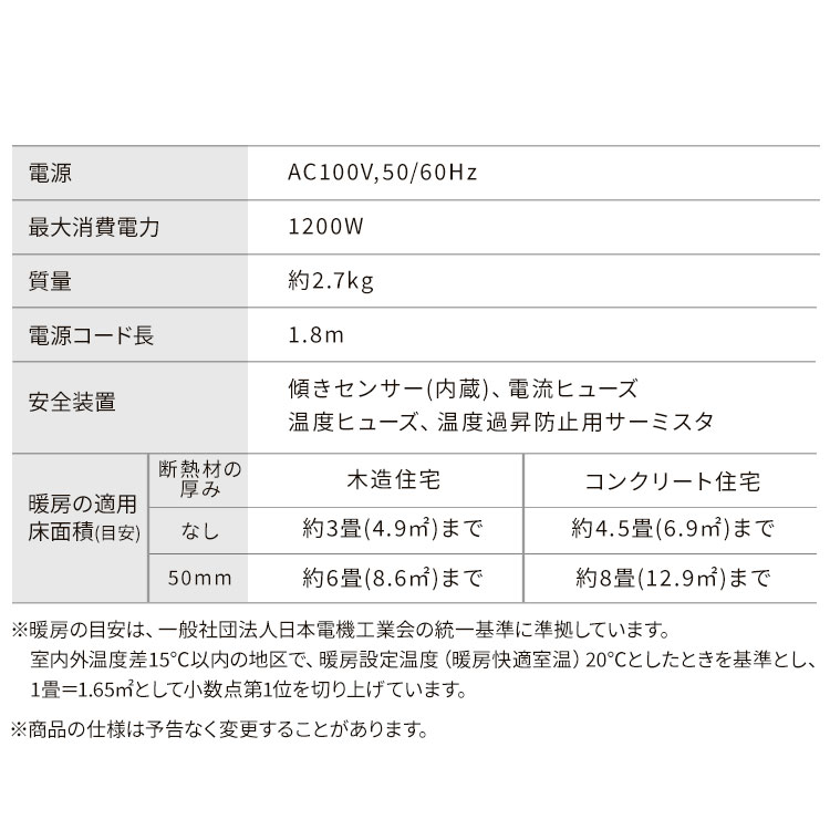 ・ターボ/1200W:リビングやお部屋をはやく暖めたいときにおすすめ!