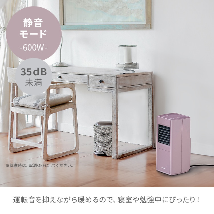 ・静音/600W:運転音を抑えながら暖めるので、寝室や勉強中にぴったり!