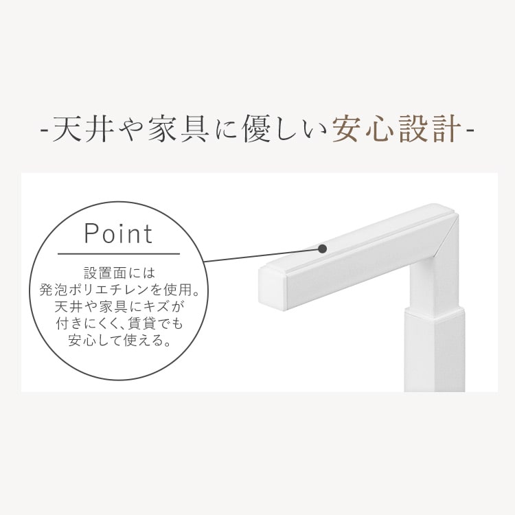天井や家具にキズがつきにくく、賃貸でも安心して使える。