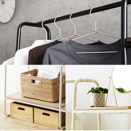衣類を掛けるだけでなく、小物を置くスペースも充実!