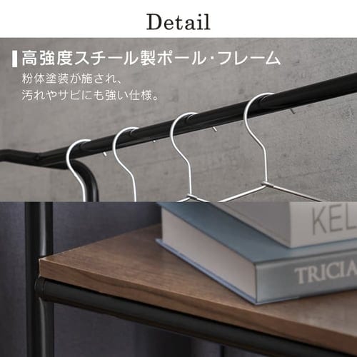 ハンガーパイプ部分はクロムメッキ加工を施したスチールを使用しており、ハンガーがこすれても色がはげない設計です。