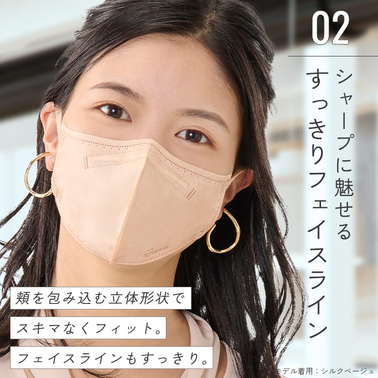 頬を包み込む立体形状で隙間なくフィット。