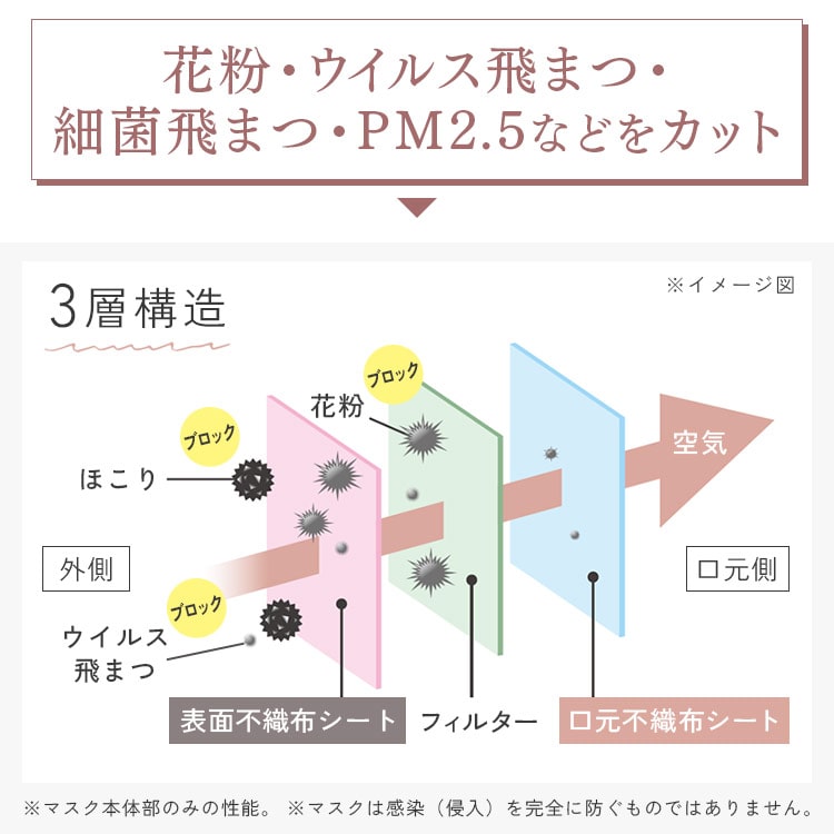 伸縮性があるやわらかいコットン仕様の幅広耳ひもがふんわりとやさしく耳の形にフィット。