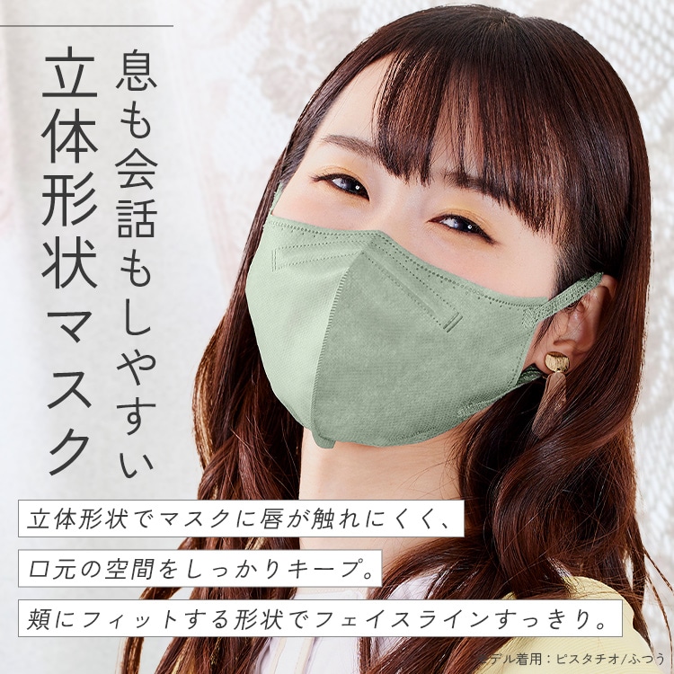 頬を包み込む特殊立体形状と、ノーズフィッターで隙間なくフィットし、花粉・ウイルス等が入る隙を与えません。