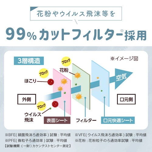 花粉やウイルス飛沫などを99%カットするフィルターを採用。
