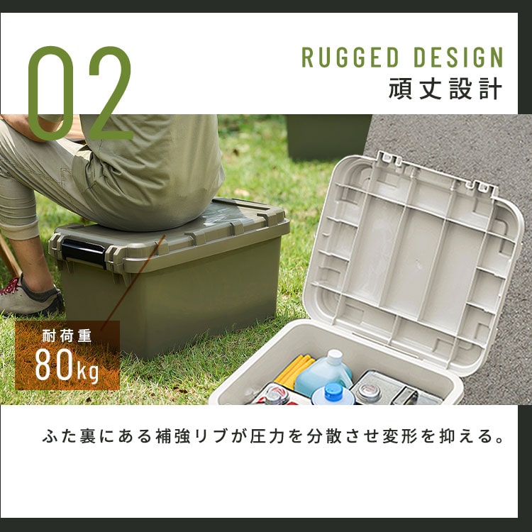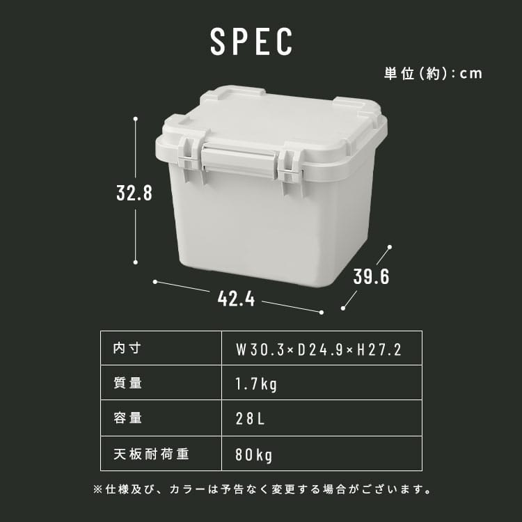 28L/耐荷重約80kg/スタッキング/ロックできる。