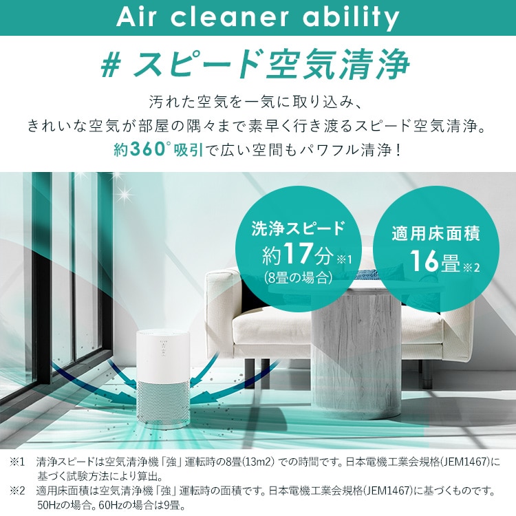 ※1 適用床面積は「強」運転時の面積です。(日本電機工業会規格(JEM1426)に基づくものです。)