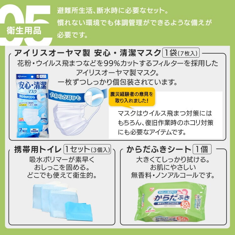 ![[公式][宮城県 被災経験企業が開発][防災士監修]防災セット 1人用 27点 BS1-27 アイリスオーヤマ](/img/0119/goods/D7/0119-298611.jpg)