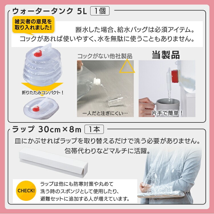 災害時に役立つ用品をセットにした、2021年最新モデルの防災リュックです。