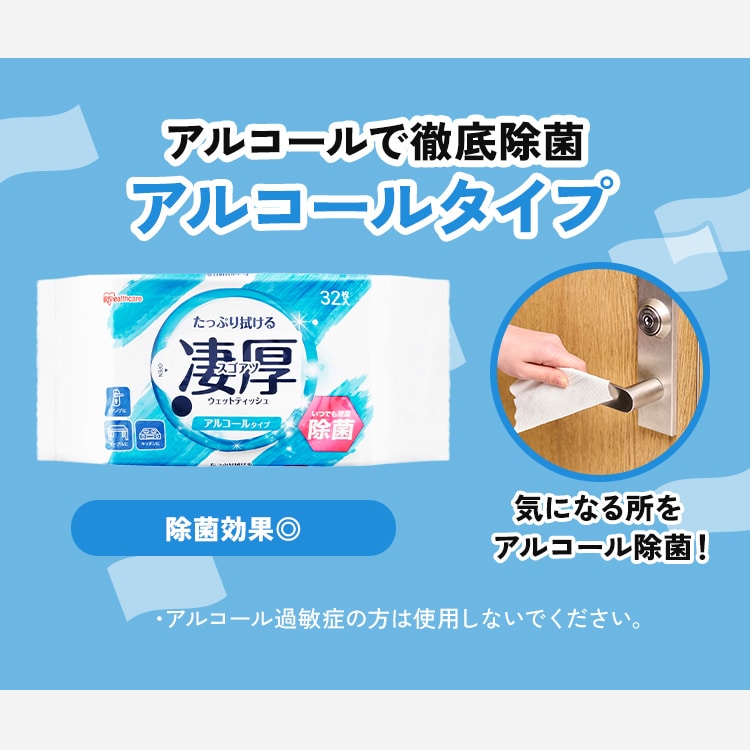 ![[公式]ウェットティッシュ アルコール 厚め エタノール 除菌シート 厚手 乾きにくい 除菌 持ち運び 凄厚ウェットティッシュ 32枚入り アイリスオーヤマ WTP-32A1P アルコールタイプ](/img/0119/goods/D3/0119-298671.jpg)